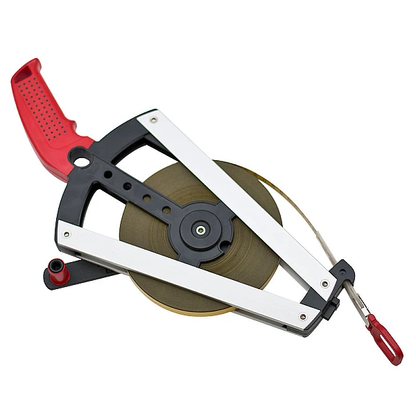 Крепление ленты рулетки BMI ERGOLINE 50 M осуществляется к специальному устройству, расположенному в передней части прибора. За счет этого конструктивного решения, нет риска попадания ленты в механизм сматывания.