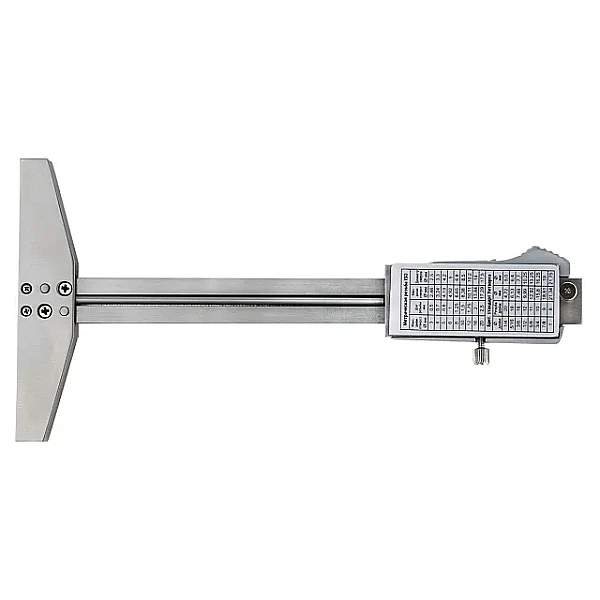 Штангенглубиномер называется SCG-150, где SC означает - штангенциркуль, G - глубиномер, а 150 - это максимальное значение измерений в мм.