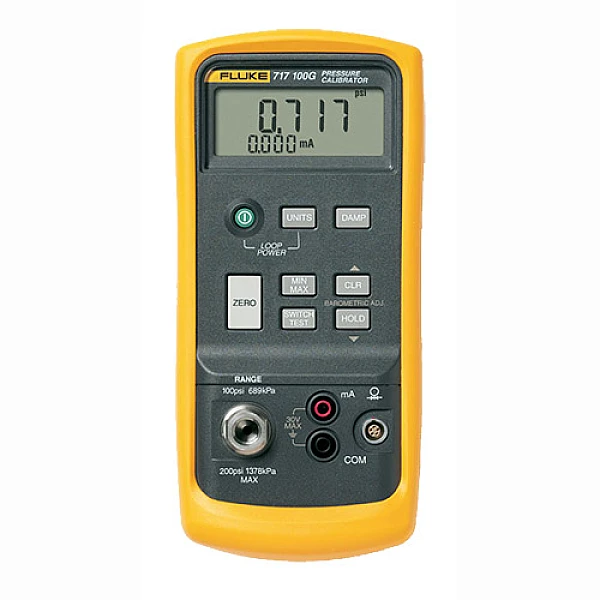 Калибратор датчиков давления Fluke 717 представляет собой комбинированный прибор, объединяющий в себе измерительные возможности прецизионного манометра и миллиамперметра. С его помощью в ходе калибровки вы можете одновременно определять давление в магистрали, а также снимать электрические показания с выхода датчика, производя все замеры за один цикл, сводя тем самым временные затраты до минимума. Показатели давления могут отображаться в одной из 11 единиц измерения (по вашему выбору). Текущие результаты измерений можно зафиксировать на дисплее прибора, используя кнопку HOLD, чем обеспечивается большее удобство при снятии показаний.