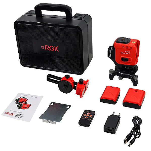 Купить Лазерный уровень RGK ALPHA 3D-D с зелёным лучом в Волгограде легко — просто позвоните по телефону: 8-800-551-11-01