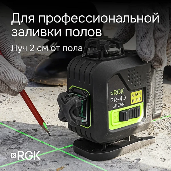 Купить Лазерный уровень RGK PR-4D Green с зеленым лучом в Волгограде легко — просто позвоните по телефону: 8-800-551-11-01