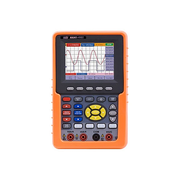 АКИП-4102 – двухканальный цифровой осциллограф с функциями мультиметра, позволяющий с высокой точностью отслеживать колебания электрического сигнала. Помимо этого, прибор измеряет силу тока, напряжение, частоту, прозванивает электроцепи. Аппарат обеспечивает высокую достоверность полученных данных и его можно использовать даже при лабораторных исследованиях.