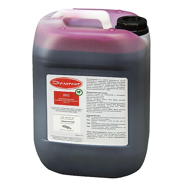 Красный пенетрант Элитест П52 является аналогом пенетранта Элитест П42, изготовленным на водной основе по экологической рецептуре. Благодаря своему составу пенетрант безвреден для окружающей среды и может утилизироваться без дополнительной очистки.