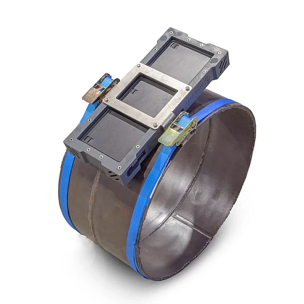 Ременной тип крепления удобен тем, что его можно использовать как на объектах из ферромагнитных, так и неферромагнитных материалов. Кроме того, ременное крепление позволяет проводить контроль труб без снятия и повреждения изоляции.