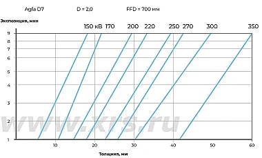 Ниже приведены номограммы экспозиций для направленных и панорамных рентгеновских аппаратов RayCraft XS при просвечивании стали.