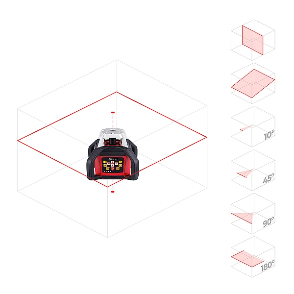 Лазерный нивелир RGK SP 610 оснащен компенсатором, который автоматически устанавливает уровень в горизонтальной плоскости. Вам нужно лишь установить лазерный нивелир на штатив или ровную поверхность и включить его, после чего система самовыравнивания не только точно выставит уровень, но и будет следить за его состоянием. В случае отклонения уровня более чем на 4° сработает сигнализация, избавив вас от исправления ошибочной разметки.