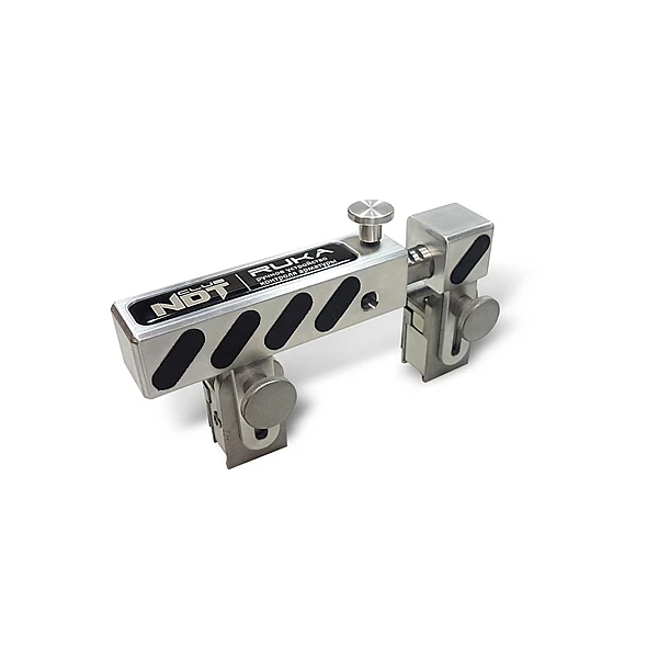 RUKA ручное устройство контроля арматуры - предназначено для ручного ультразвукового контроля стыковых однорядных соединений стержней арматуры диаметром от 20 до 40 мм, выполненных ванными и многослойными способами сварки в инвентарных формах, на стальных скобах-накладках и подкладках или без формующих и вспомогательных элементов. Устройство применяется в составе с ультразвуковым высокочастотным дефектоскопом общего назначения, позволяющим работать по раздельной схеме подключения ультразвуковых пьезоэлектрических преобразователей (ПЭП).