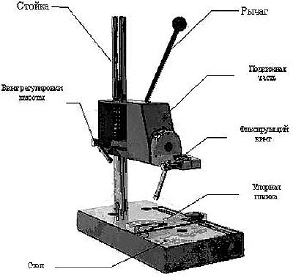 Штатив обеспечивает плавное механические нагружение, а также перпендикулярное положение преобразователя в процессе измерения твердости.