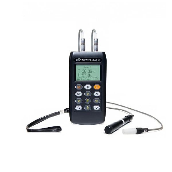 Термогигрометры ТЕМП-3.21 предназначены для измерения относительной влажности и температуры воздуха и определения точки росы. ТЕМП-3.21 предназначен для измерений двумя датчиками: 1) совмещённым датчиком температуры и влажности воздушной среды;2) дополнительным датчиком температуры. Прибор имеет память измерений с привязкой ко времени и дате, связь с ПК для передачи данных измерений.