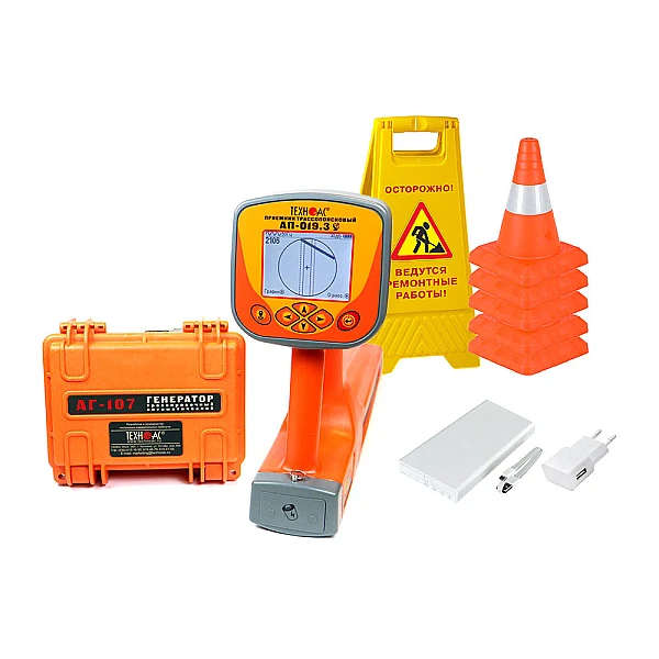 Комплект оснащен новейшим компактным автономным генератором АГ-107 со встроенными элементами питания, дисплеем и встроенной индукционной антенной, для трассировки коммуникации бесконтактным способом.