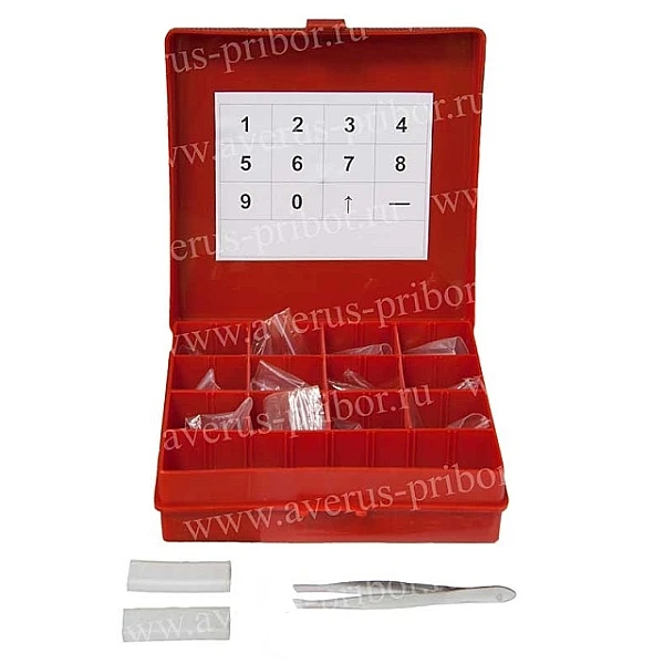 - Пеналы − 5 шт. Каждый пенал имеет 6 ячеек, в которые можно поместить в определенной последовательности до 6 знаков. Пенал с набранным цифровым обозначением контролируемого изделия или отдельного участка устанавливается в карман кассеты или непосредственно на изделие.